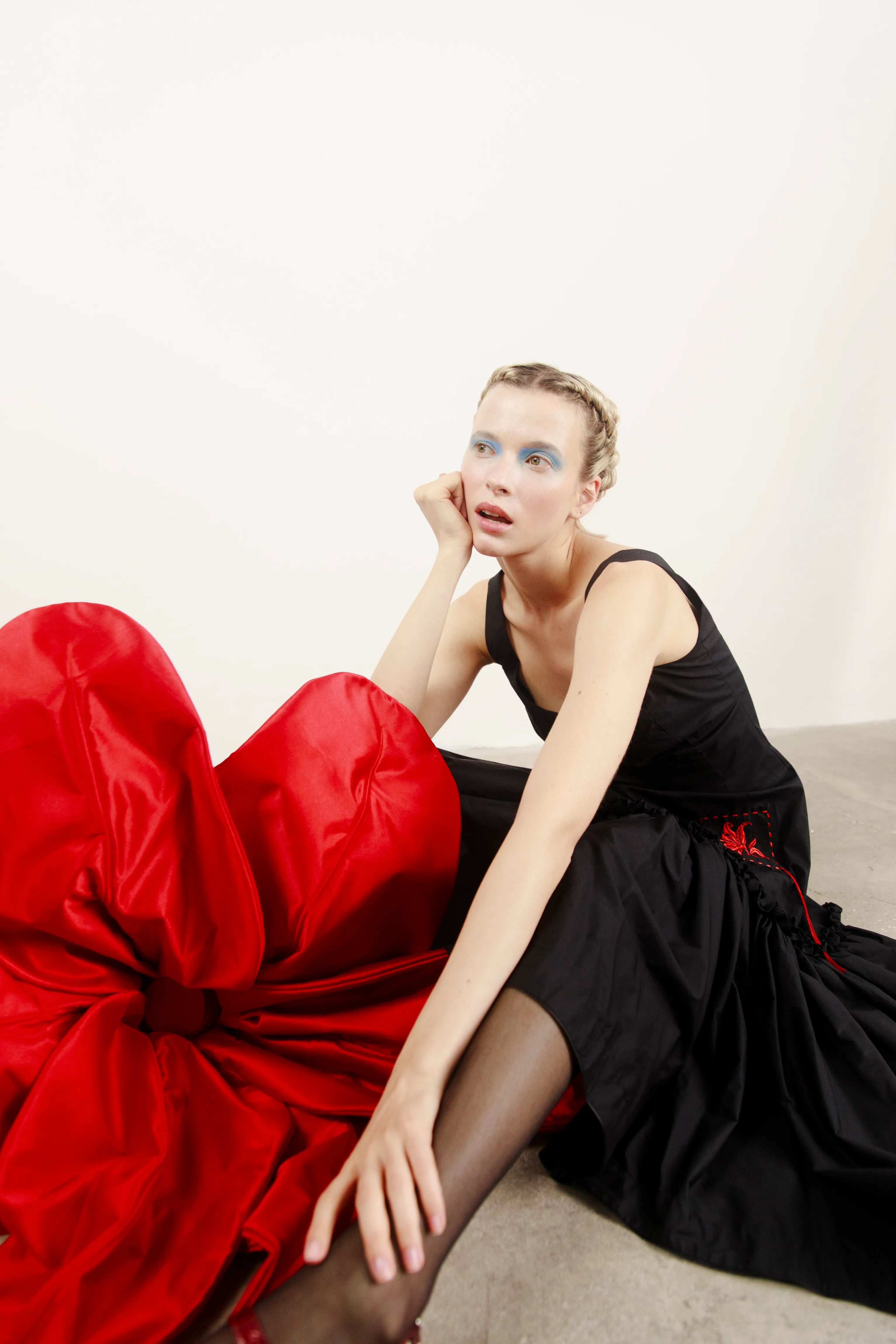 La poeta Lina Botero vistiendo nuestro Dahlia Dress poetry reading en Paisaje.