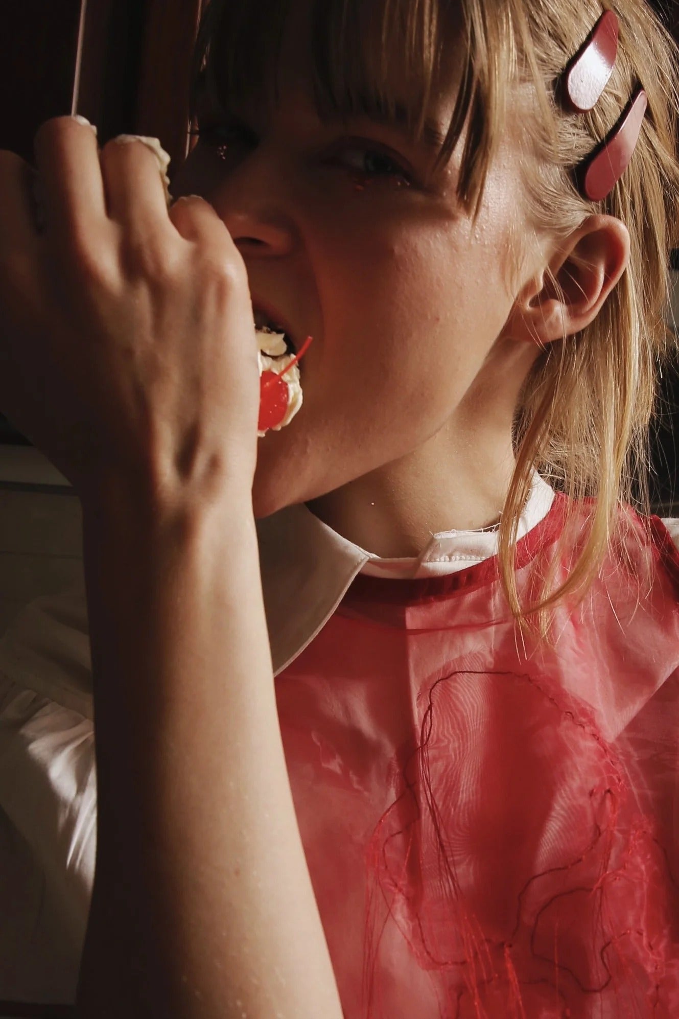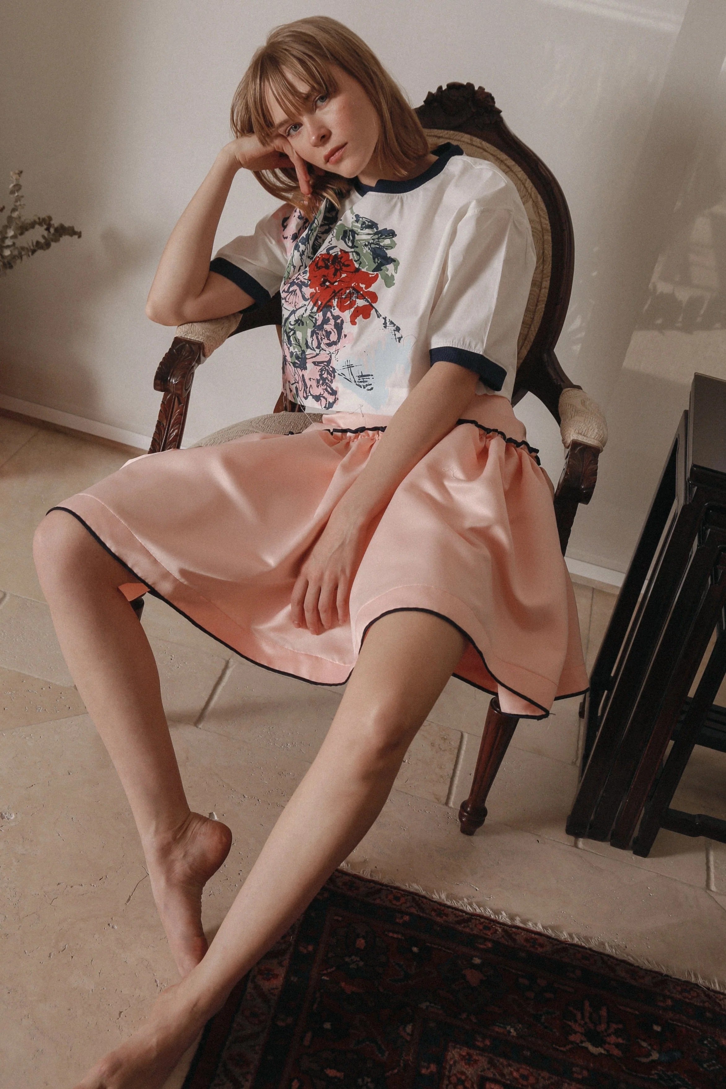 Esta colección ultra femenina, inspirada en aquellas niñas que aman ponerse vestidos y “no se saben sentar”, reclama con irreverencia la fuerza de nuestra sensibilidad, encontrando deleite tanto en el sublime colorido de las flores silvestres, como en el apacible marchitar de un arreglo floral.